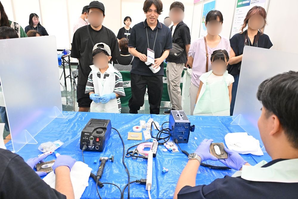 自社の事業や製品について認知を広げるためのプログラム。紫外線を当てると硬化する接着剤や嫌気性封着材など、日常生活では知る機会が少ない同社製品を紹介した。実際に接着剤を使い、貝殻や恐竜のフィギアなどで思い思いに飾り付けた世界に一つのペン立ては、子どもたちの宝物になりそうだ。神奈川県から来場した小学4年生の女の子は「接着剤の種類が多くて驚いた。紫外線を当てて固まる接着剤が面白かった」と目を輝かせていた。