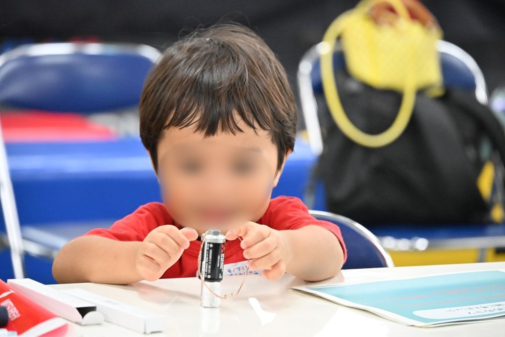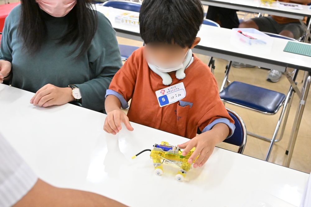 電池で動くロボットの模型を作りながらエンジニアの仕事を学ぶ小学生向けのワークショップだ。細かい部品の取り付けや工具を使った複雑な工程もあったが、親子で協力しながら乗り越え、模型が動き出すと、揃って笑顔を咲かせていた。神奈川県から来た小学5年生の男の子は「ドライバーを使う作業が難しかったけど、模型が完成してうれしい」と話し、付き添いの父親も「子どもに良いところを見せることができた」と目を細めた。