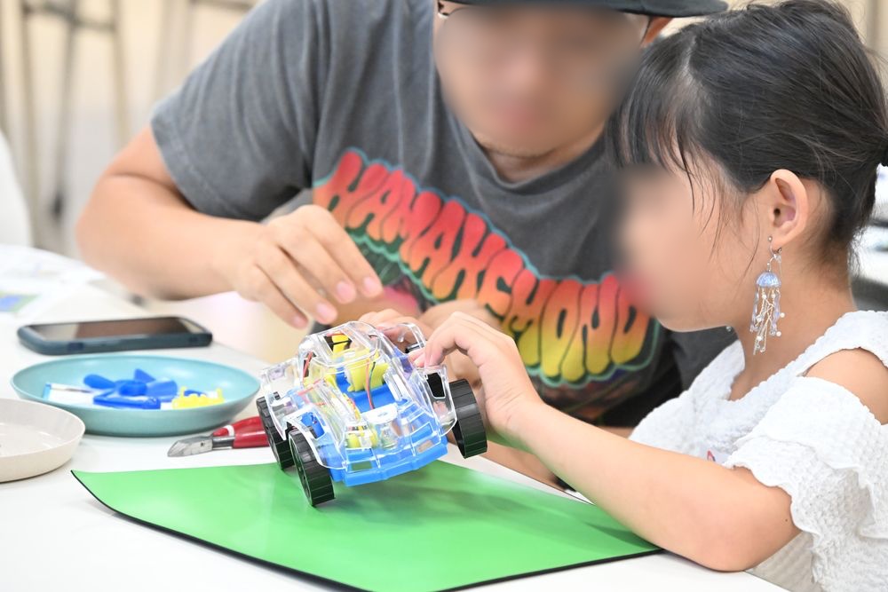 電気自動車(EV)の模型づくりを通じてモノづくりの楽しみや喜びを知ってもらい、興味・関心を引き出すワークショップだ。完成したEVの模型が特設コースを駆け抜けると、子どもも大人も大きな歓声をあげた。東京都から訪れた小学3年生の男の子は「自分で作った模型がレースに1番になってうれしい。また来たい」と自慢のマシンを手に話した。付き添った母親も「夏の自由研究にぴったりだった」と明るい表情を見せた。